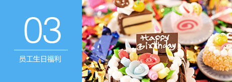 員工生日福利,作為一年只有一次的生日大日子,公司怎么能不幫你慶祝一番?每個(gè)員工在生日時(shí)都會(huì)得到公司送出的美味大蛋糕跟同事美好的祝福。 -
