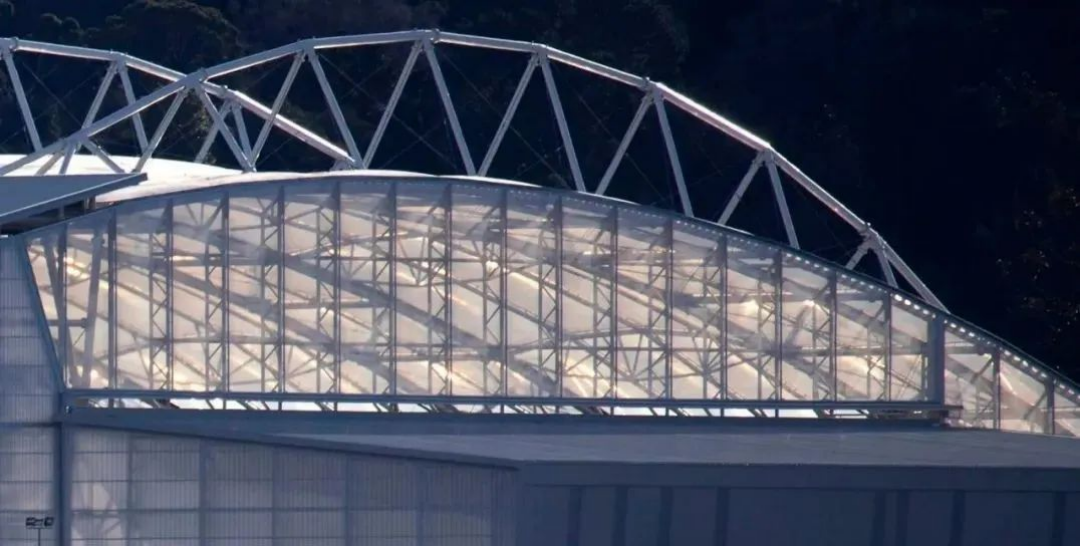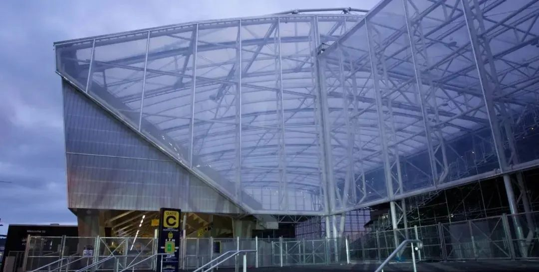 迄今為止,福賽斯·巴爾體育場(chǎng)仍是世界上擁有天然草皮的永久封閉式體育場(chǎng)。其屋頂由5個(gè)鋼桁架支撐,每個(gè)桁架跨度為105米,能夠承受一輛汽車的重量,主桁架(南看臺(tái))長(zhǎng)130米,重390噸。整個(gè)屋頂還覆蓋了2.05萬(wàn)平方米的ETFE材料。雖然ETFE并不是一種新產(chǎn)品,這種材料曾用于英國(guó)康沃爾郡(Cornwall)的伊甸園植物園(Eden Project)和中國(guó)北京的國(guó)家游泳中心“水立方”,但這是首次將其紫外線半透明特性在體育場(chǎng)中進(jìn)行應(yīng)用,并創(chuàng)造了南半球大型的ETFE覆蓋結(jié)構(gòu)。達(dá)尼丁的氣候寒冷潮濕,為鼓勵(lì)觀眾來(lái)此參加現(xiàn)場(chǎng)活動(dòng),這座屋頂也成為了體育場(chǎng)的重要特征——由于其外形酷似園藝溫室,這座全覆蓋的體育場(chǎng)被昵稱為“玻璃屋”(The Glasshouse)。