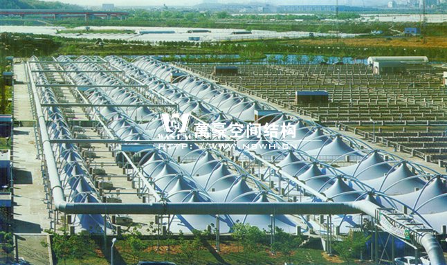 依據(jù)生活及城市污水處理的特點,在城市污水處理廠加蓋除臭中,大型池體的封閉體系選擇尤為關鍵,鋼支持反吊膜的技術充分發(fā)揮了結構骨架與膜材料的完美結合。專門研發(fā)并生產符合該領域的污水池覆蓋膜結構,在具體工程中已大量使用,其安裝快捷、檢驗方便、形式靈活多樣、自潔性好、經(jīng)濟效果顯著。