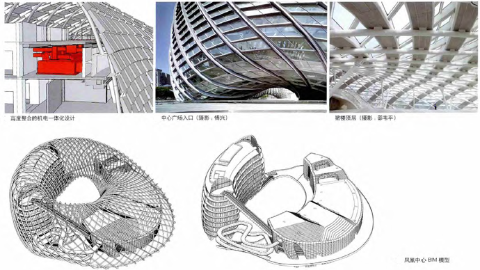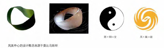 在這個設(shè)計中,“莫比烏斯環(huán)”的構(gòu)思源自“鳳凰”的形象,莫比烏斯環(huán)數(shù)學(xué)模型的最大特點是“有界無邊”,消除了傳統(tǒng)建筑中的“正交”概念,所有曲線在360°的空間中連續(xù)循環(huán),通過一個連續(xù)的、不斷變化的曲面將高聳的辦公樓和低矮的演播樓統(tǒng)一成一個封閉的整體。