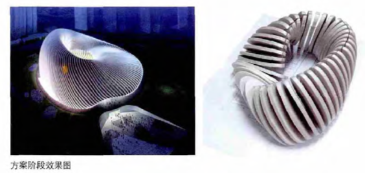 計算機生形可以幫助設(shè)計師將設(shè)計意向以代碼的形式傳遞給軟件,再由軟件轉(zhuǎn)化成設(shè)計圖形。計算機圖形學(xué)包括了兩個重要的方面,一是幾何關(guān)系,二是表現(xiàn)效果。在鳳凰中心的設(shè)計中,由莫比烏斯環(huán)的幾何關(guān)系發(fā)展成實實在在的張拉膜結(jié)構(gòu)建筑結(jié)構(gòu)關(guān)系,需要借助強大的數(shù)字技術(shù)。
