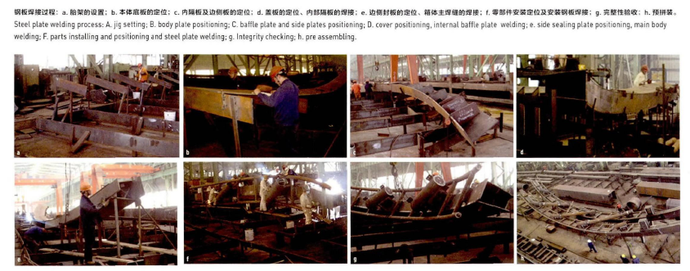 “樣箱”其實就是“內(nèi)膽”,一個梯形截面主肋,去掉板厚,里面是空芯的,他們先用木頭做了一個“芯”,這個木頭“芯”的外皮,是完全能夠貼合主肋鋼板的內(nèi)表皮輪廓的。這樣,用這種傳統(tǒng)的“木工活”就解決了進度的問題。這樣的方式不需要專業(yè)操作儀表的工人,非常直觀,一目了然。