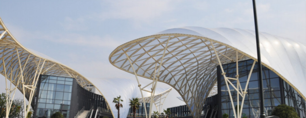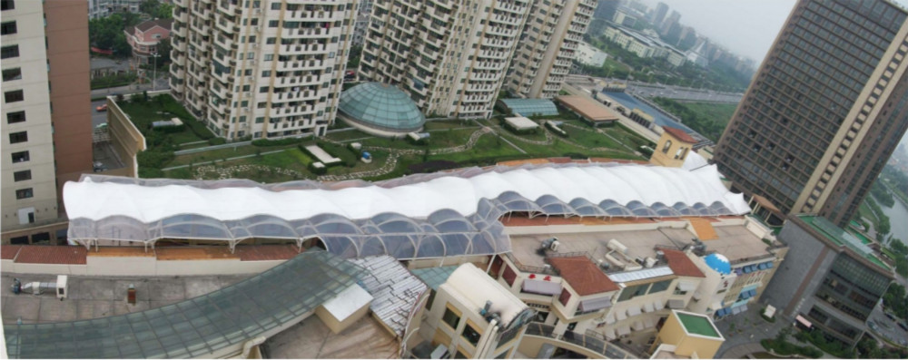 屋面膜結(jié)構(gòu)是以膜結(jié)構(gòu)作為覆蓋材料的屋面,膜結(jié)構(gòu)因?yàn)榫哂懈邚?qiáng)度、耐腐蝕、自重輕、造型自由飄逸等優(yōu)異的特點(diǎn),使它在世界各地受到廣泛應(yīng)用。