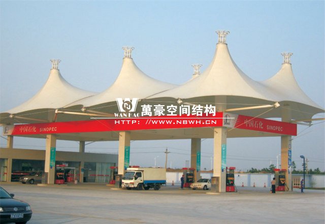 加油站膜結(jié)構(gòu)公司哪家好?加油站膜結(jié)構(gòu)廠家報價。加油站膜結(jié)構(gòu),一般是指安裝在加油站的膜結(jié)構(gòu)頂棚。膜結(jié)構(gòu)頂棚因其自重輕,具有良好的受力特點,所以成為大跨度空間結(jié)構(gòu)的主要形式之一,加油站膜結(jié)構(gòu)也屬于其范疇。
