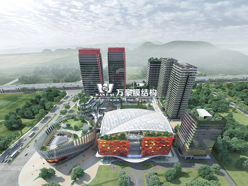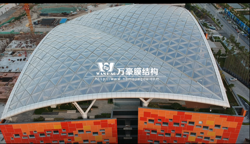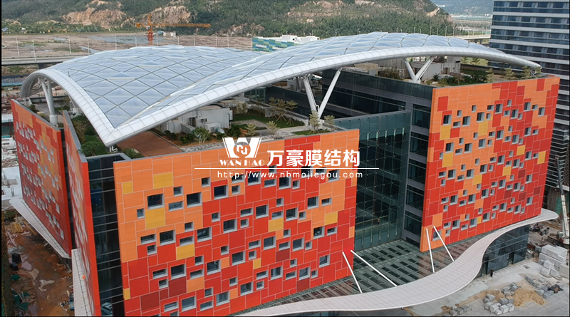 該園區(qū)的膜結(jié)構(gòu)屋頂由寧波萬豪空間結(jié)構(gòu)制作,大家可以欣賞一下它的風(fēng)采。