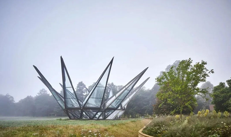 赫斯維克工作室公布了其最新項目,這是一座位于國家信托基金會伍爾貝丁花園邊緣的機(jī)械動力溫室,是英國西蘇塞克斯一處歷史遺產(chǎn)的組成部分。溫室結(jié)構(gòu)高度為15米,占地面積143平方米,可展開的結(jié)構(gòu)成為新花園的焦點,展現(xiàn)出古代絲綢之路對當(dāng)今英國花園的影響,由十個玻璃和鋁結(jié)構(gòu)的“萼片”組成,展開時間為四分鐘,形成了大型皇冠形空間。
