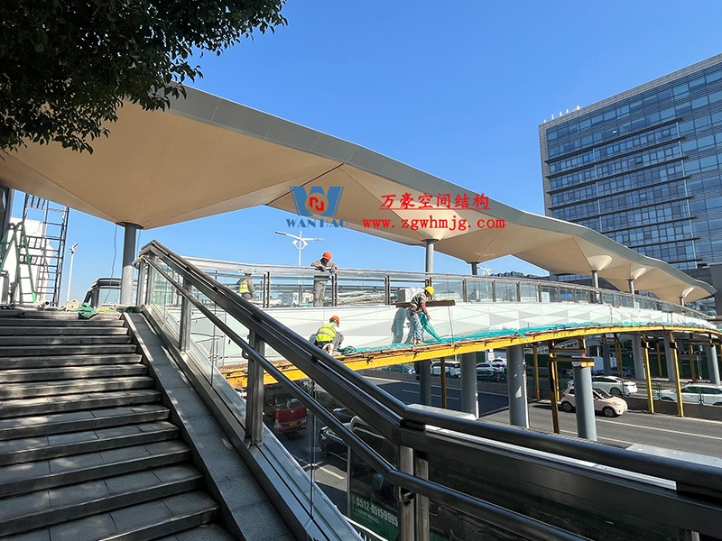 您所在的位置: 首頁(yè)>>工程案例>>膜結(jié)構(gòu)交通設(shè)施蘇州人行天橋ptfe膜結(jié)構(gòu)