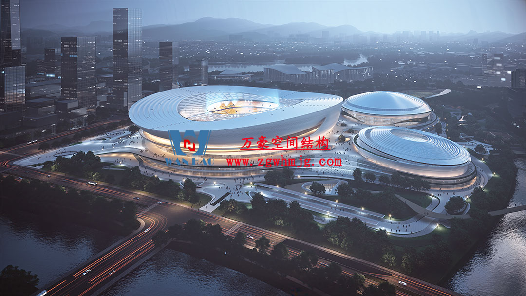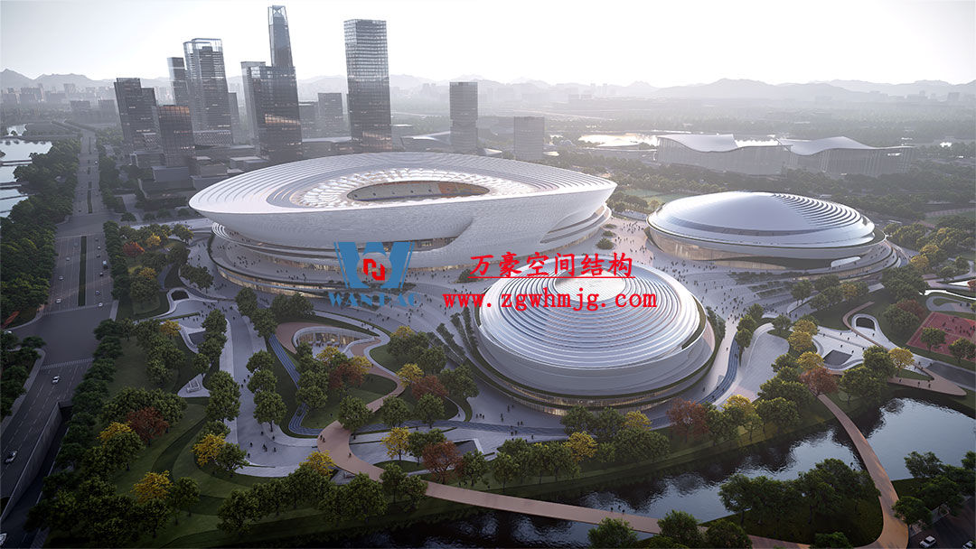 杭州余杭國際體育中心,位于浙江省杭州市余杭區(qū)杭州未來科技城.該項目二次鋼構(gòu)用鋼量9000噸,PTFE膜展開面積40000平方米,是長三角最大覆殼式膜結(jié)構(gòu)體育建筑。
