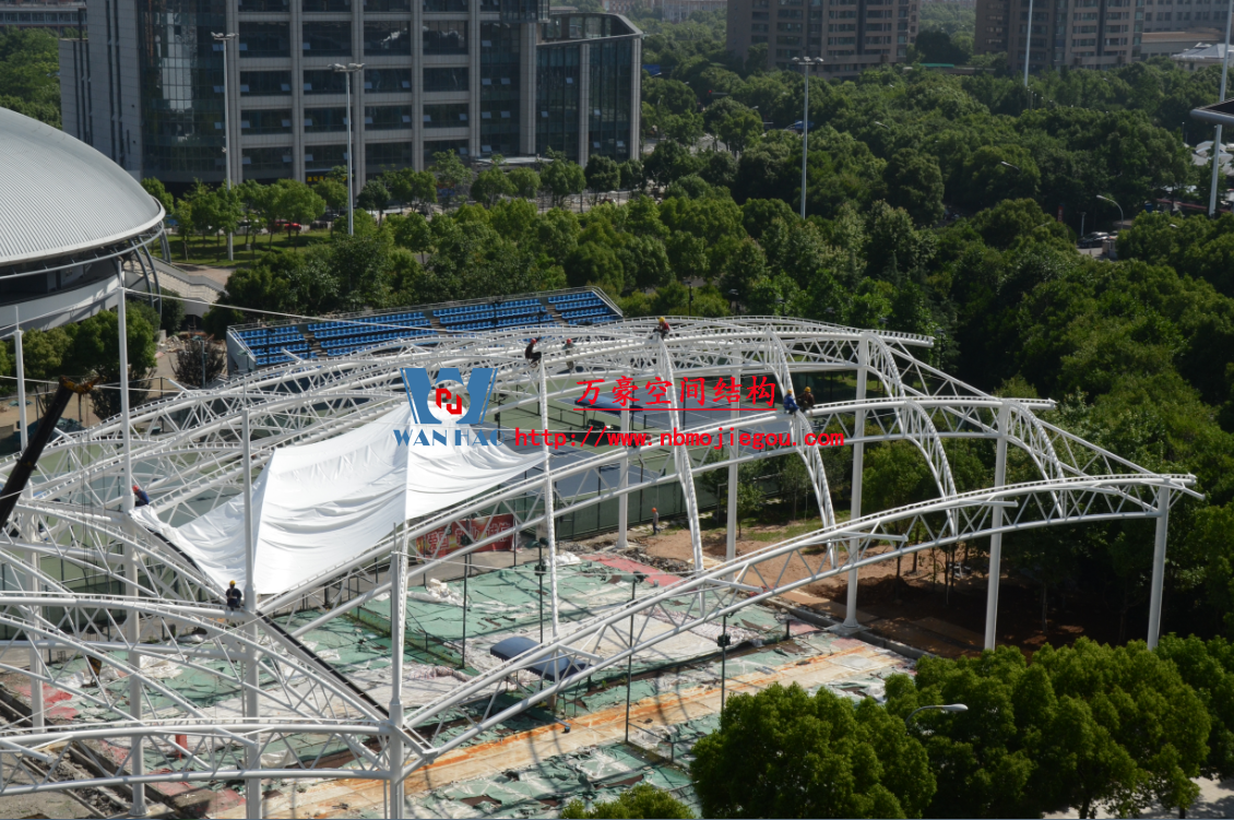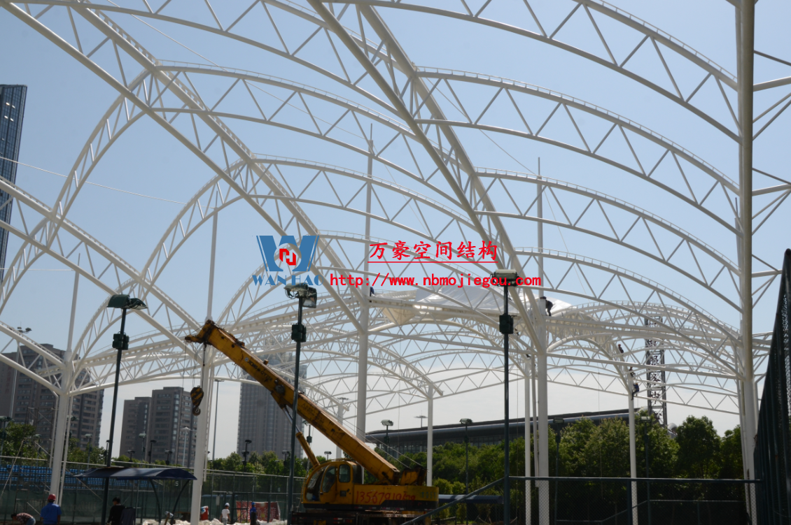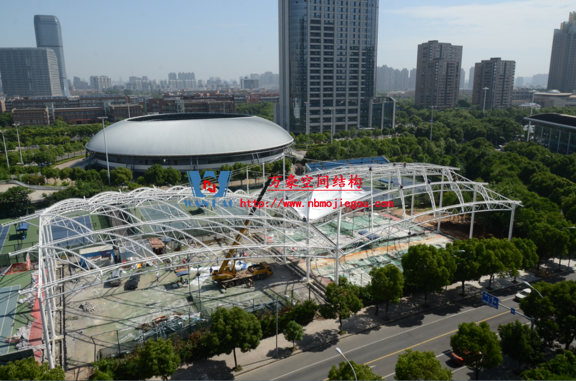 您所在的位置: 首頁>>工程案例>>膜結(jié)構(gòu)體育設(shè)施鄞州網(wǎng)球中心異形鋼結(jié)構(gòu)
