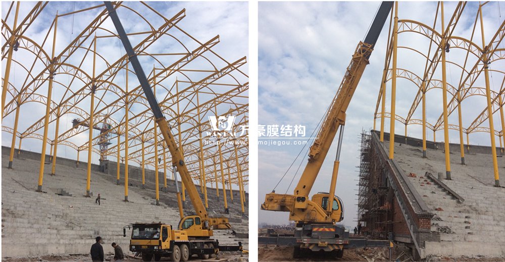 橫店影視城膜結構體育場項目,項目近萬平米,其中鋼結構500多噸,鋼結構部分現(xiàn)已接近尾聲。感謝現(xiàn)場50多位員工及管理團隊,在寒冷的天氣中,堅守自己的崗位,兢兢業(yè)業(yè),把工作做到了極致,感謝他們的付出!