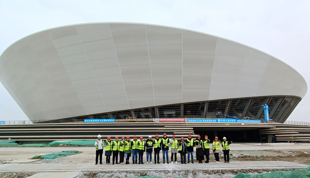1月29日,代表團(tuán)驅(qū)車前往無(wú)錫奧體中心,開(kāi)啟第二站實(shí)地考察。作為環(huán)太湖區(qū)域稀有的臨湖綜合體育場(chǎng)館群,無(wú)錫奧體中心以“白鷺振翅”為設(shè)計(jì)理念,其造型設(shè)計(jì)和承建,堪稱鋼膜結(jié)構(gòu)應(yīng)用的經(jīng)典力作。