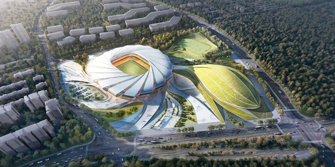 龍興足球場宛如一朵綻放的山茶花。設(shè)計團(tuán)隊深度挖掘巴渝山水基因,通過參數(shù)化建模優(yōu)化曲面結(jié)構(gòu),以“重慶氣質(zhì)的足球殿堂”為設(shè)計理念,規(guī)劃、景觀和建筑設(shè)計包含匯聚、旋轉(zhuǎn)、上升的流暢曲線等元素,體現(xiàn)重慶火辣的生活方式、火紅的發(fā)展勢頭以及火熱的足球激情,塑造與城市氣質(zhì)、足球文化相呼應(yīng)的獨特城市地標(biāo)。