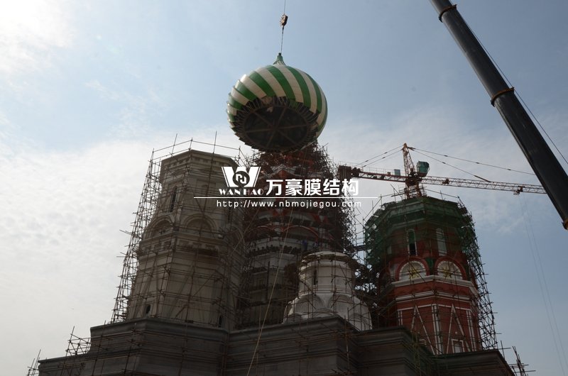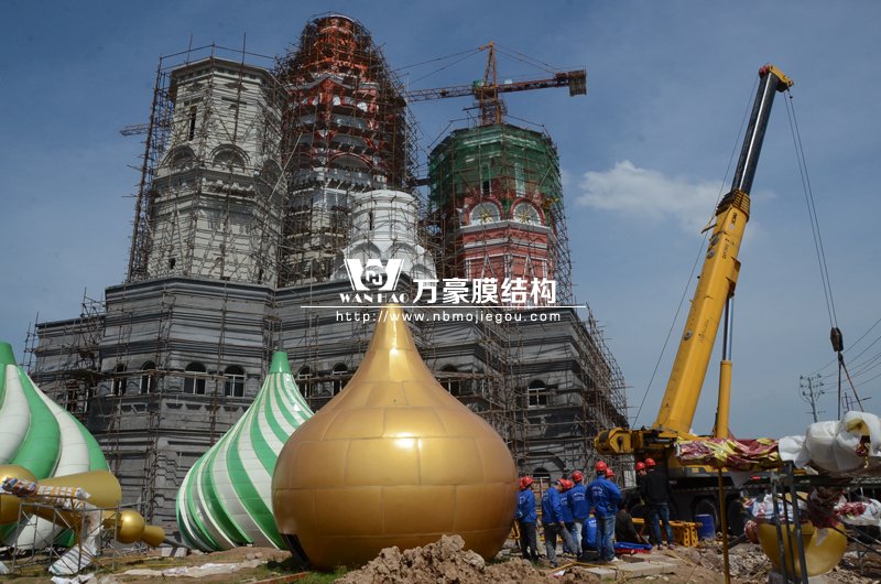 您所在的位置: 首頁>>新聞動(dòng)態(tài)>>萬豪資訊橫店影視城俄羅斯館頂部吊裝開始