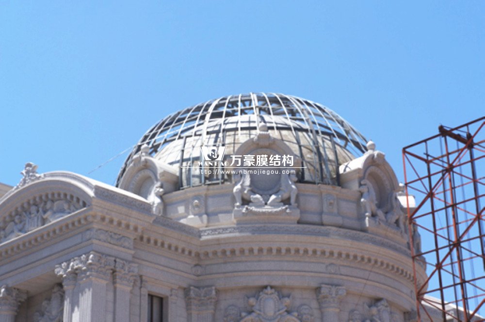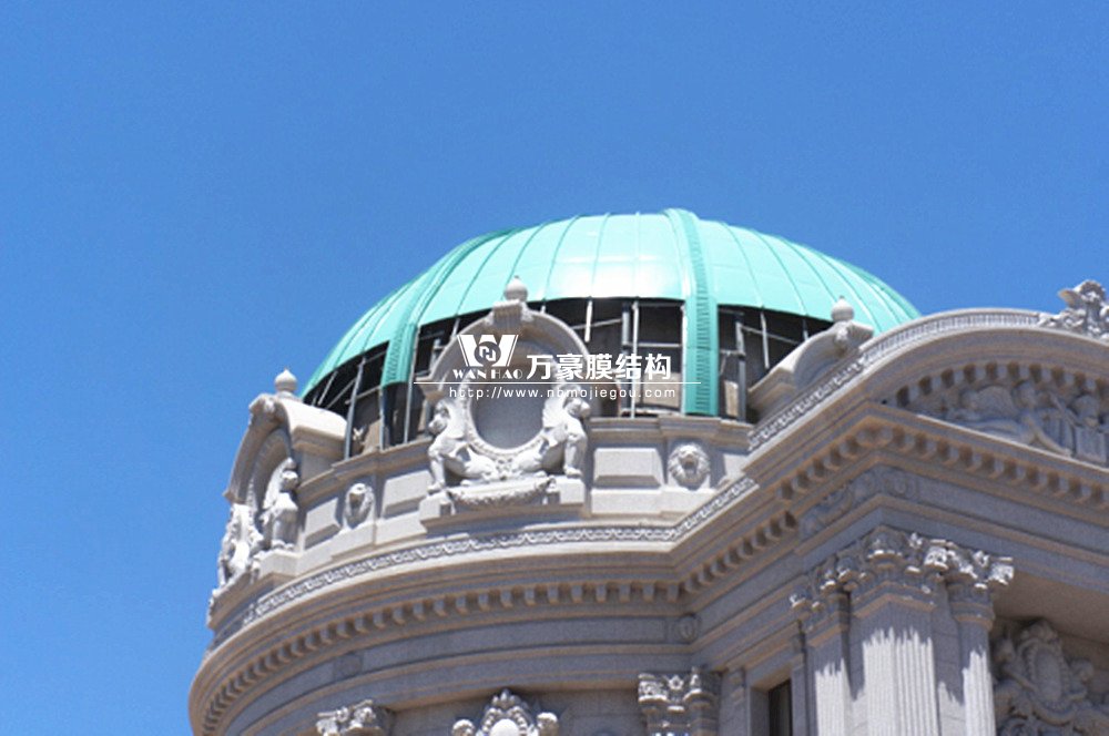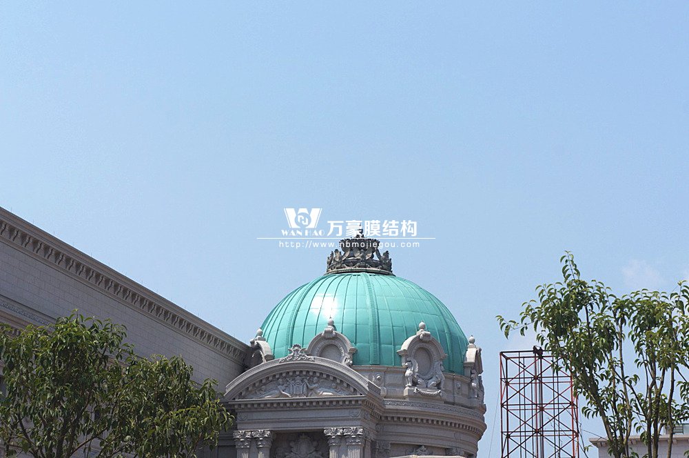 豪華的像是一個首飾盒,裝滿了各種珠寶的巴黎歌劇院目前重塑于橫店影視城圓明新園皇家園林內(nèi),其中兩側(cè)的銅綠穹頂宛如畫龍點睛般凸顯其精致、雄偉。兩個穹頂結(jié)構(gòu)相同并對稱,穹頂主結(jié)構(gòu)采用相同弧形彎管拼裝而成,結(jié)構(gòu)表面采用480塊大小各異的鋁單板組裝而成。