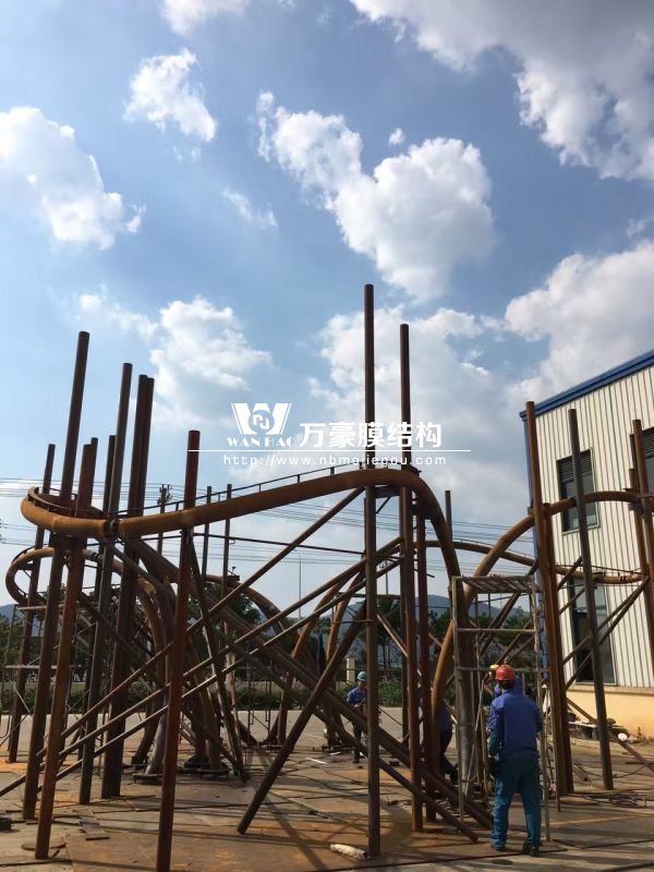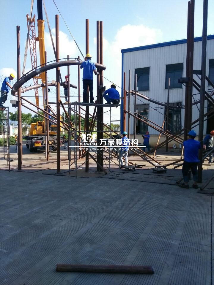 我司承建的斯里蘭卡膜結(jié)構(gòu)項(xiàng)目,經(jīng)過(guò)和中方代表進(jìn)行完整的交流后,斯里蘭卡方面僅能提供圖片,為此我司根據(jù)要求制作了完整的方案進(jìn)行匯報(bào),經(jīng)過(guò)多次的溝通交流,最終確定了圖紙、施工方案及生產(chǎn)方案。