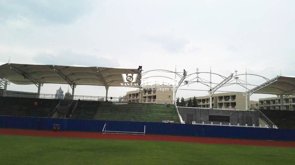 膜結(jié)構(gòu)看臺(tái)決定著一個(gè)學(xué)校的形象,所以看臺(tái)設(shè)計(jì)不僅要具有可觀賞性、藝術(shù)價(jià)值、唯一性,而且還能使觀賞者與景觀產(chǎn)生共鳴想通。而膜結(jié)構(gòu)因于其造型自由輕巧、阻燃、制作簡易、安裝快捷、節(jié)能、使用安全等優(yōu)點(diǎn)。