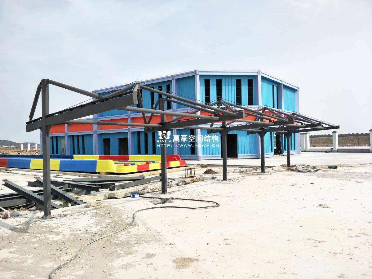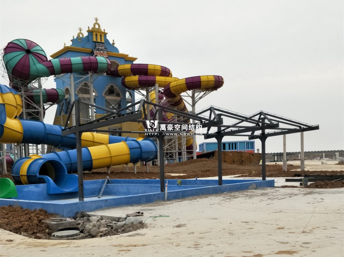 海闊天涳水世界鋼膜結(jié)構(gòu)工程,由寧波萬豪空間結(jié)構(gòu)工程有限公司承建?,F(xiàn)場測量、深化設(shè)計(jì)、制作及安裝由寧波萬豪空間結(jié)構(gòu)工程有限公司全權(quán)負(fù)責(zé);用鋼量高達(dá)180噸,建筑面積達(dá)5000平米。