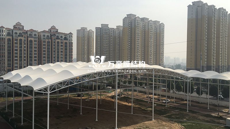 河南電網(wǎng)培訓(xùn)中心膜結(jié)構(gòu)晴雨棚項(xiàng)目,由寧波萬(wàn)豪空間結(jié)構(gòu)工程有限公司承建。該項(xiàng)目膜結(jié)構(gòu)展開(kāi)面積9000平米,用鋼量500噸。