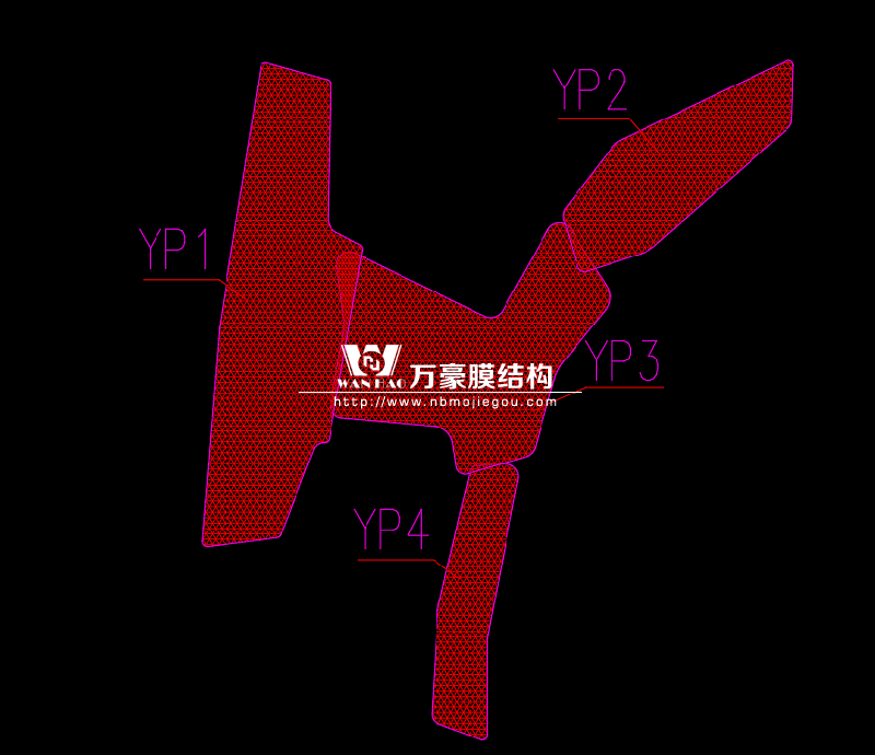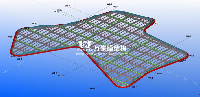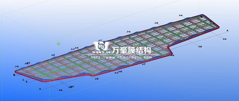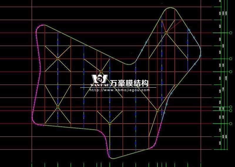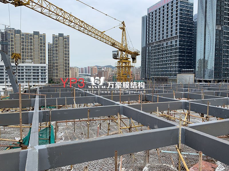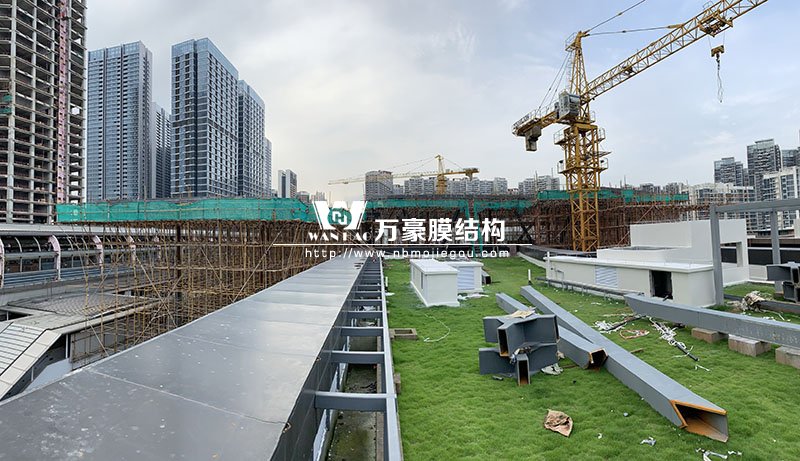 此項(xiàng)目位于廣東省深圳市龍華區(qū),膜結(jié)構(gòu)展開(kāi)面積5000平米,用鋼量300噸。