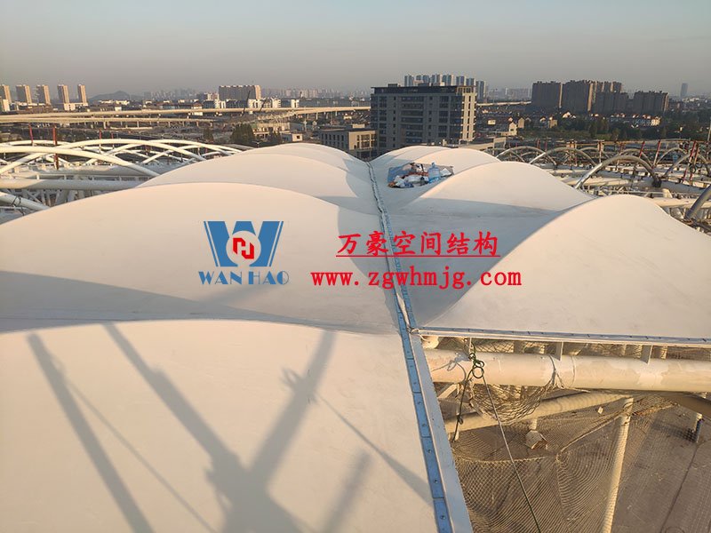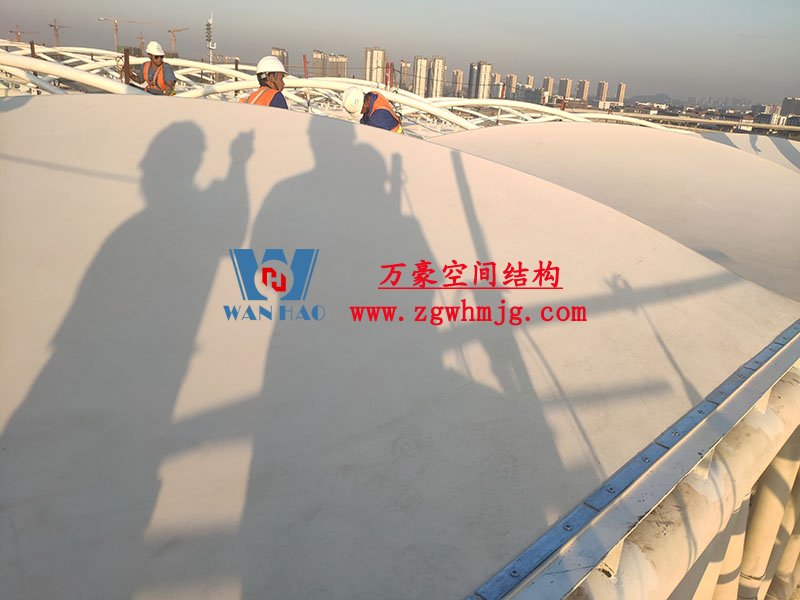 目前,項(xiàng)目鋼結(jié)構(gòu)接近尾聲,開(kāi)始安裝膜結(jié)構(gòu)。