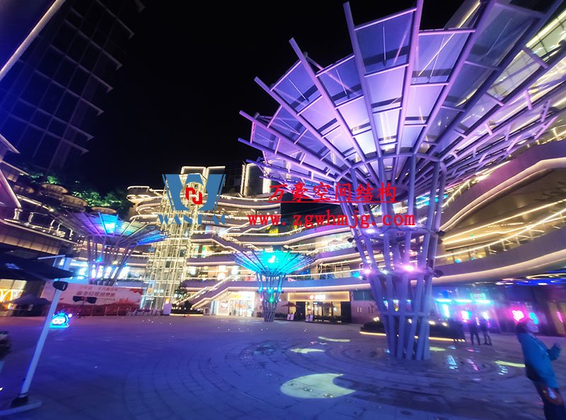 石家莊東南智匯城倒傘ETFE膜結(jié)構(gòu)項(xiàng)目,在燈光的無(wú)限變化下,呈現(xiàn)了不一樣的視覺(jué)效果。