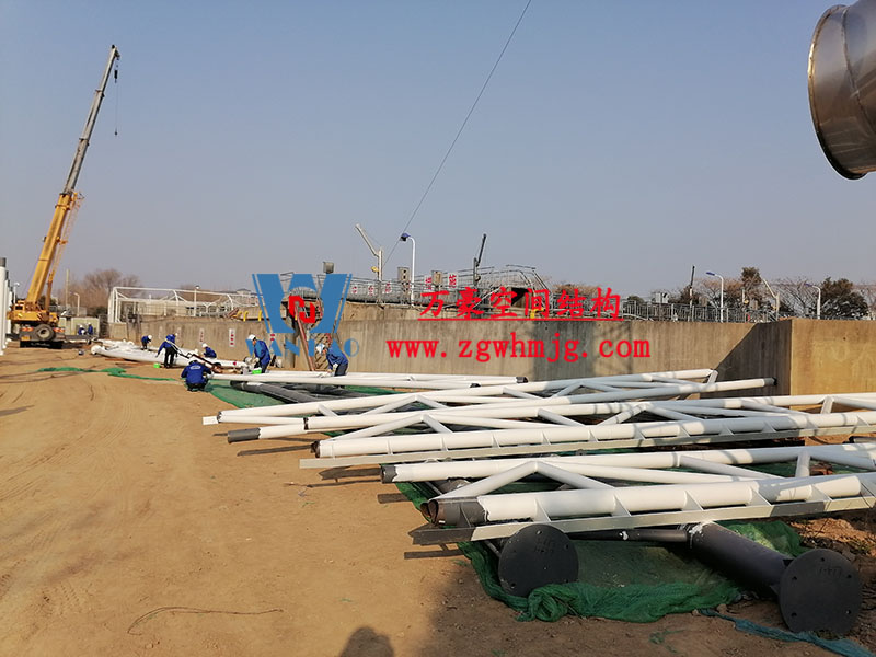 亳州市污水處理廠一期氧化溝密封升級改造工程南區(qū)氧化溝立柱已安裝完畢