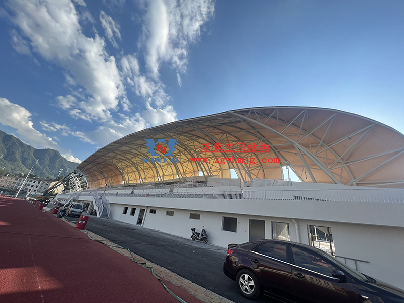 龍泉市體育場(chǎng)鋼膜結(jié)構(gòu)工程位于浙江省麗水市龍泉市大沙曾家張家區(qū)塊,該項(xiàng)目用鋼量200噸,膜結(jié)構(gòu)展開(kāi)面積3000平米。