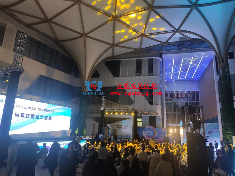 其中膜鋼構(gòu)工程為寧波萬(wàn)豪空間結(jié)構(gòu)工程有限公司承建,該項(xiàng)目用鋼量260噸,PTFE膜結(jié)構(gòu)展開(kāi)面積3500平方米,ETFE膜結(jié)構(gòu)展開(kāi)面積1500平方米。