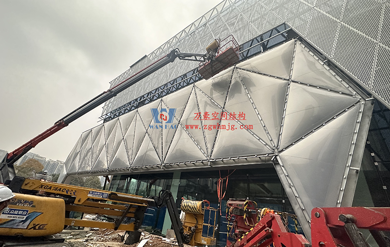 中建錦源匯廣場10-3#樓膜結(jié)構(gòu)工程位于四川省成都市高新區(qū)應(yīng)龍南一路與觀東二街交匯處,該項(xiàng)目ETFE膜結(jié)構(gòu)展開面積700平米,PTFE膜結(jié)構(gòu)展開面積700平米。由寧波萬豪空間結(jié)構(gòu)工程有限公司承建。