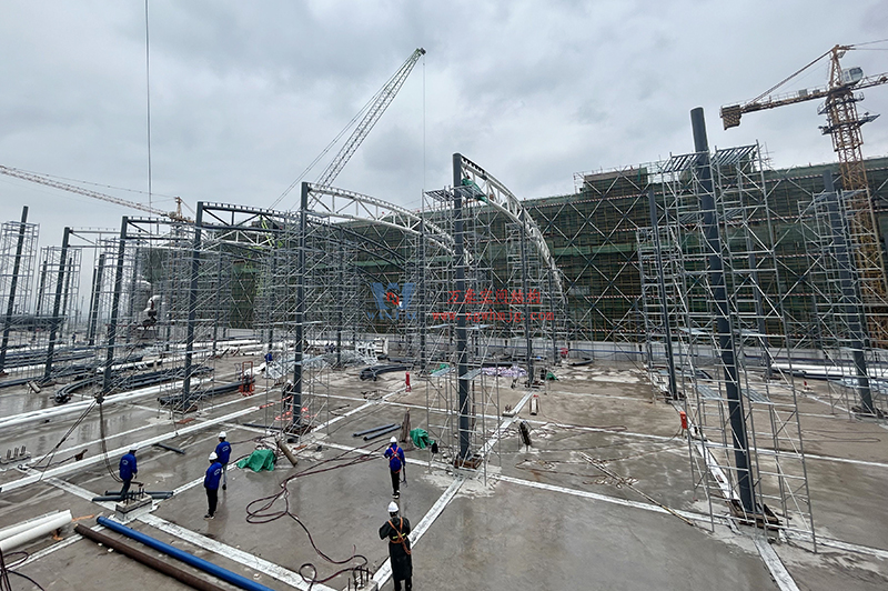 為圓滿完成建設(shè)任務(wù),萬豪統(tǒng)籌安全防控和施工管理,保證施工安全、質(zhì)量的前提下,合理倒排工期,精心組織、晝夜奮戰(zhàn),優(yōu)化施工方案,以實現(xiàn)節(jié)點工期為目標(biāo),統(tǒng)籌兼顧,切實保證施工生產(chǎn)穩(wěn)步有序推進(jìn)。工作人員爭分奪秒,掀起了搶工期??⒐さ氖┕じ叱保瑸橥瓿赡繕?biāo)全力沖刺。在施工人員緊抓時間節(jié)點的前提下,工程主體鋼構(gòu)部分已接近尾聲,膜結(jié)構(gòu)進(jìn)場安裝也已排上日程。